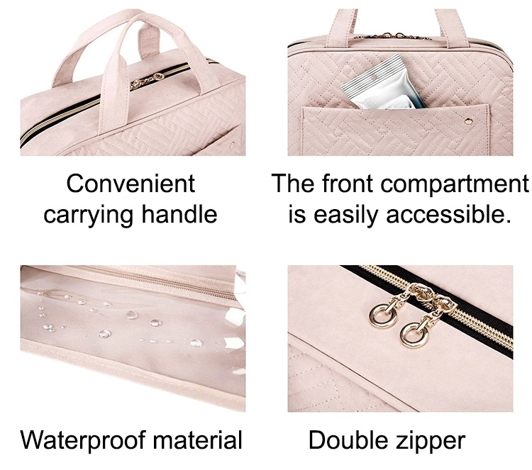 Portable cosmetic bag travel toiletry bag with hook